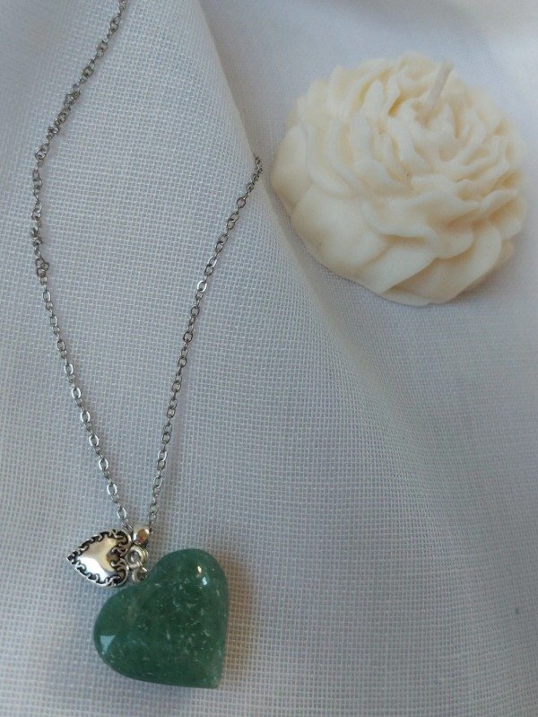 Cadena y dije de acero quirúrgico y piedra natural cuarzo verde.